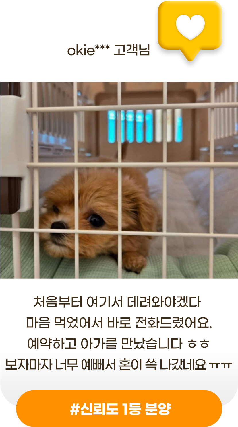 전문가의 꼼꼼한 케어를 거친 반려동물만을 분양하며, 입양 이후에도 따뜻한 사후관리 서비스를 제공합니다.